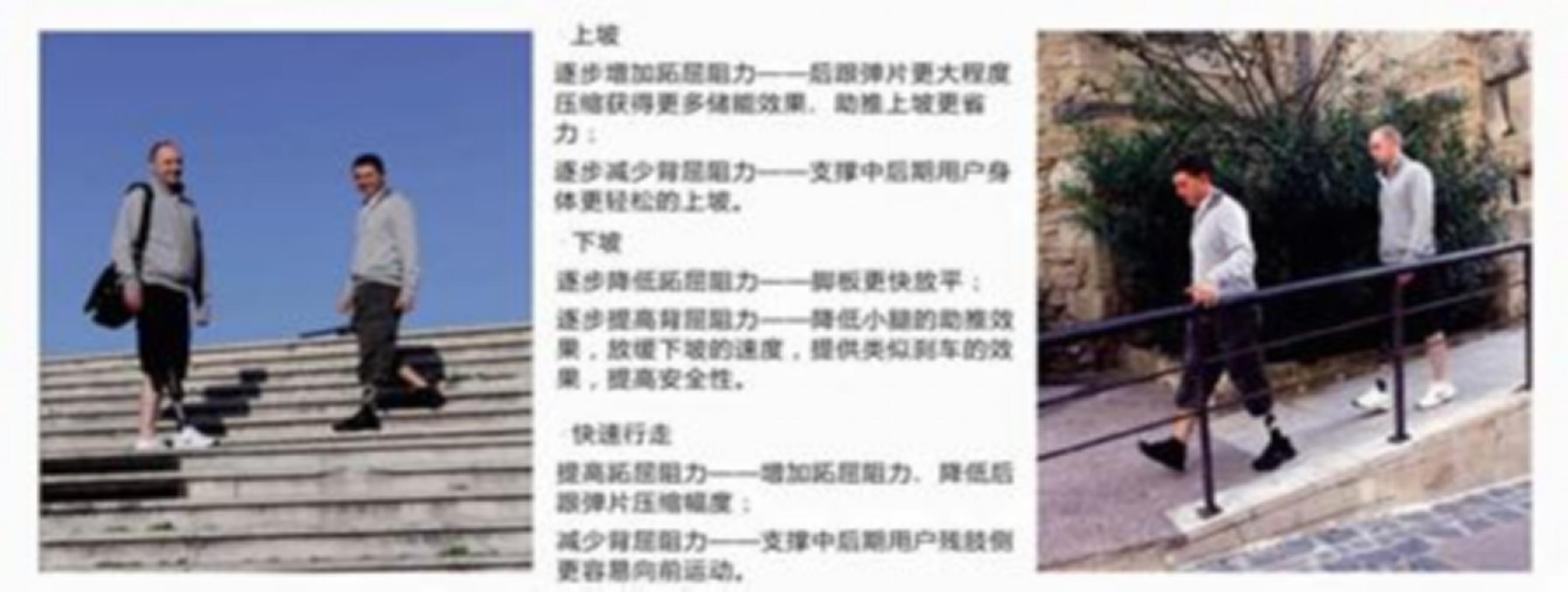 ●变速响应控制速,自动调整足底屈曲抵抗力,斜坡走路时能快速反应,改善了制动安全稳定。