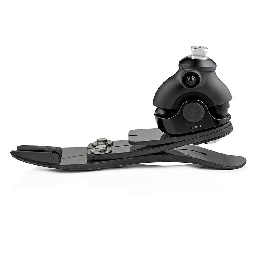 低外形暴风飞毛腿调跟脚设计初衷是为了让用户能在任意场合随心所欲的搭配鞋子,不会发生对线不准或降低储能效果的问题。脚板可以根据不同的鞋子简单快速地调整对线,同时又能保证整体对线是不变的。
